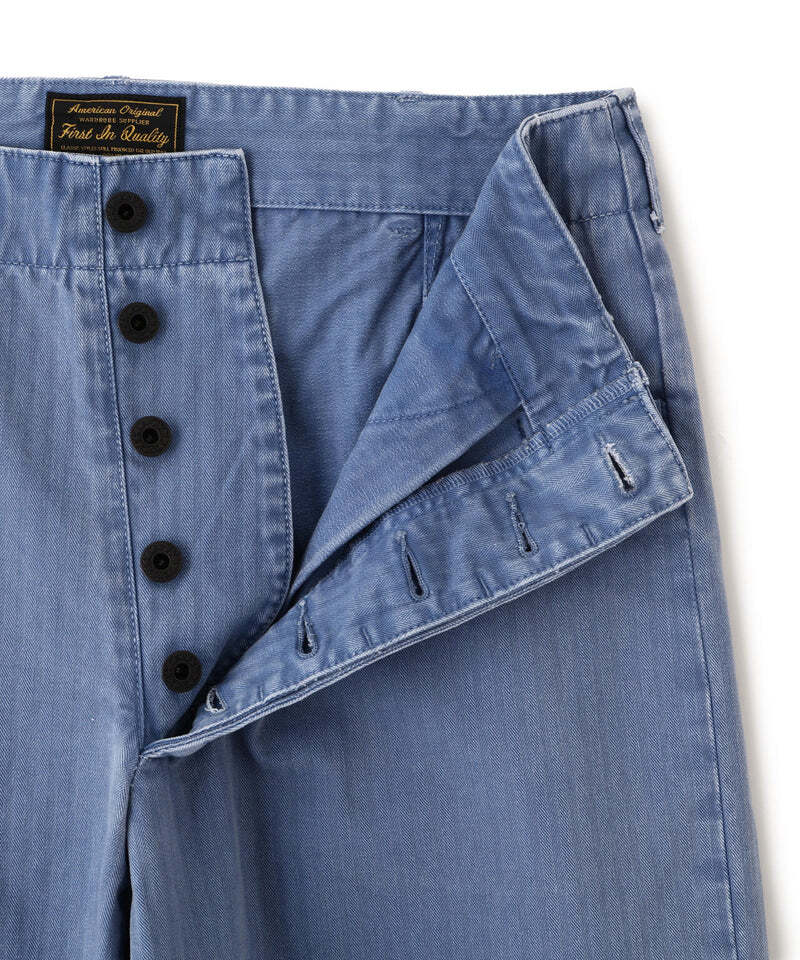 ・マットな質感が特徴のヘリンボーン生地を採用したトラウザーズ