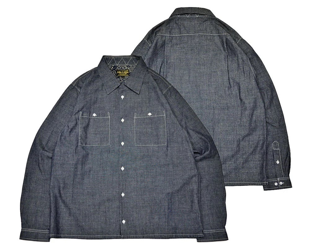 ・薄手でハリのあるシャンブレー素材を使用した開襟シャツ