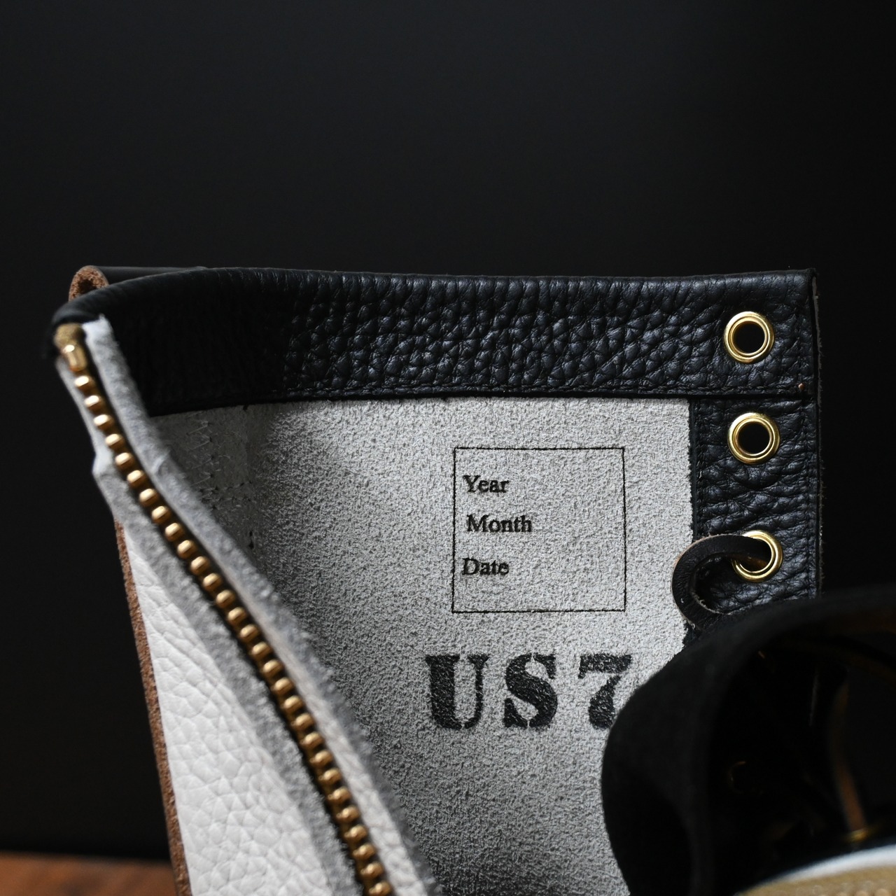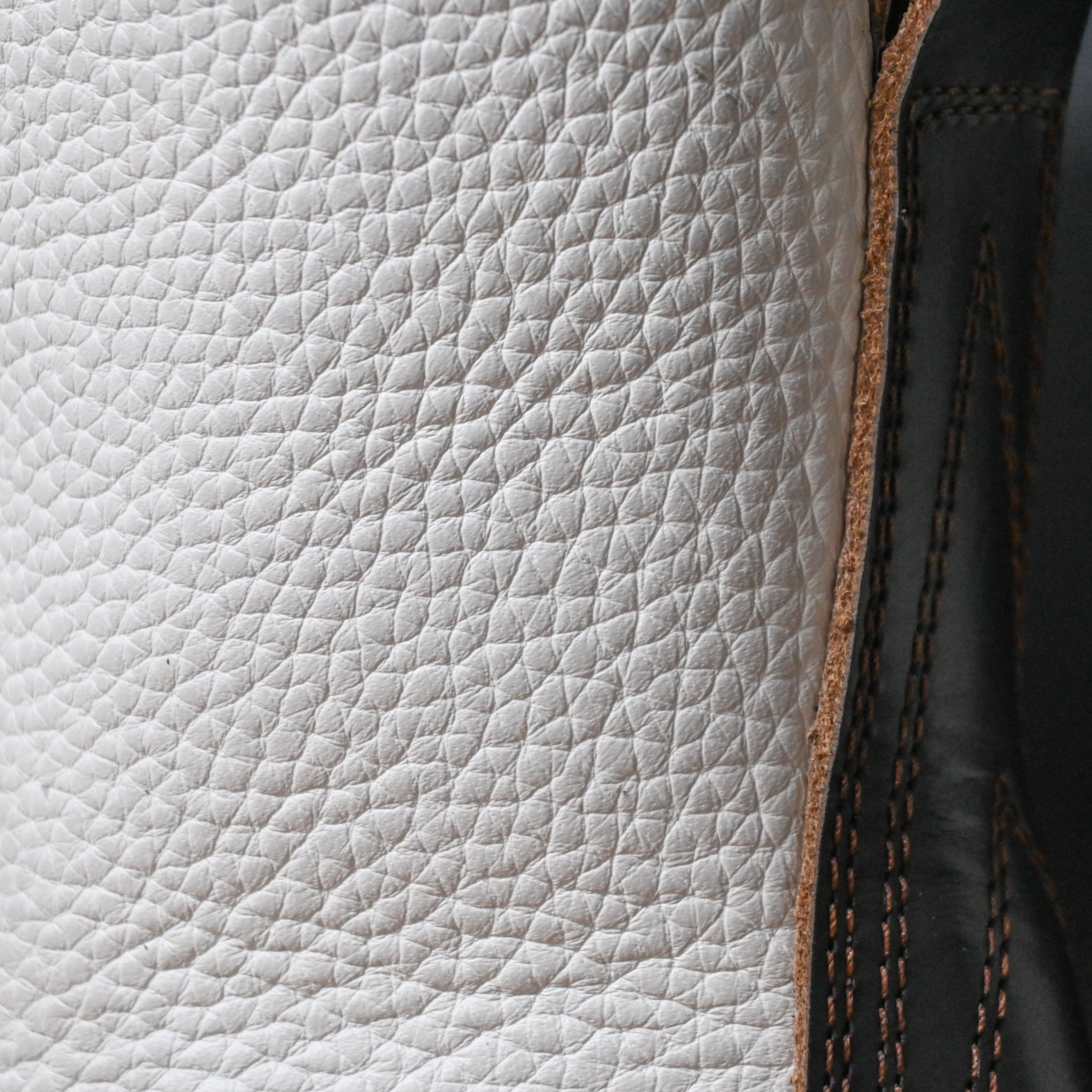 ・シャフト箇所に採用したアイボリーのシボ革は耐久性が高く、傷も目立ちにくいタフな革で使い込むほど経年変化が楽しめます