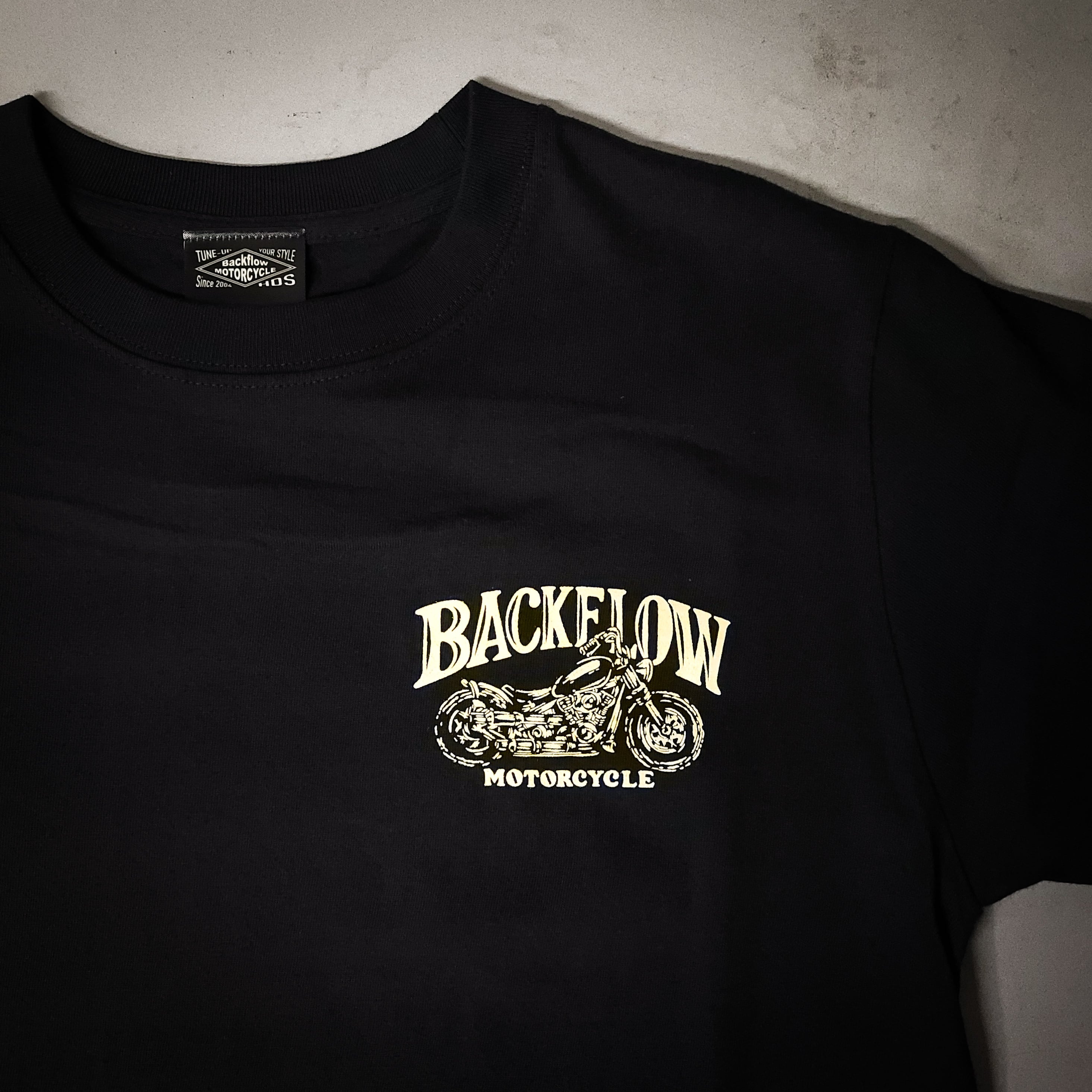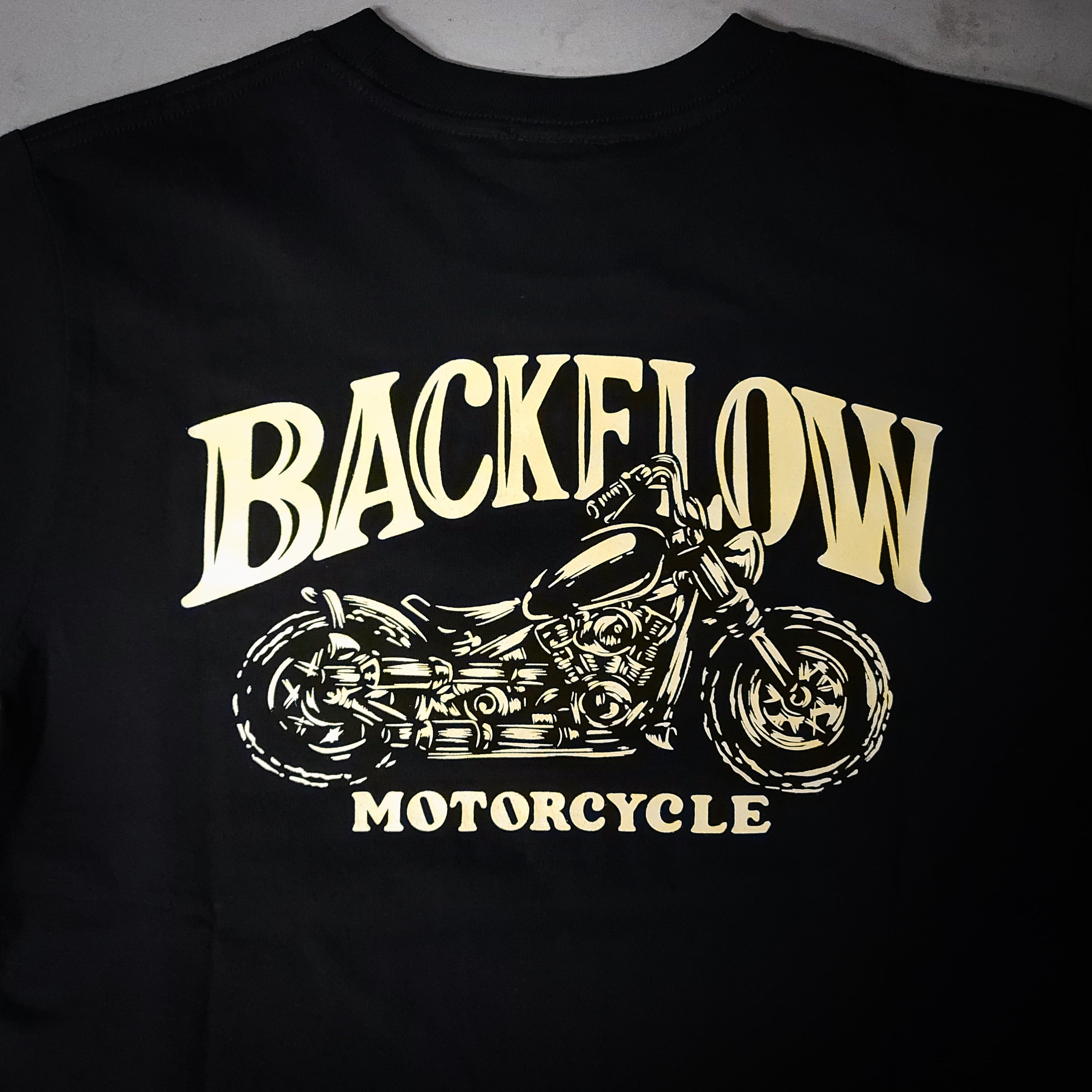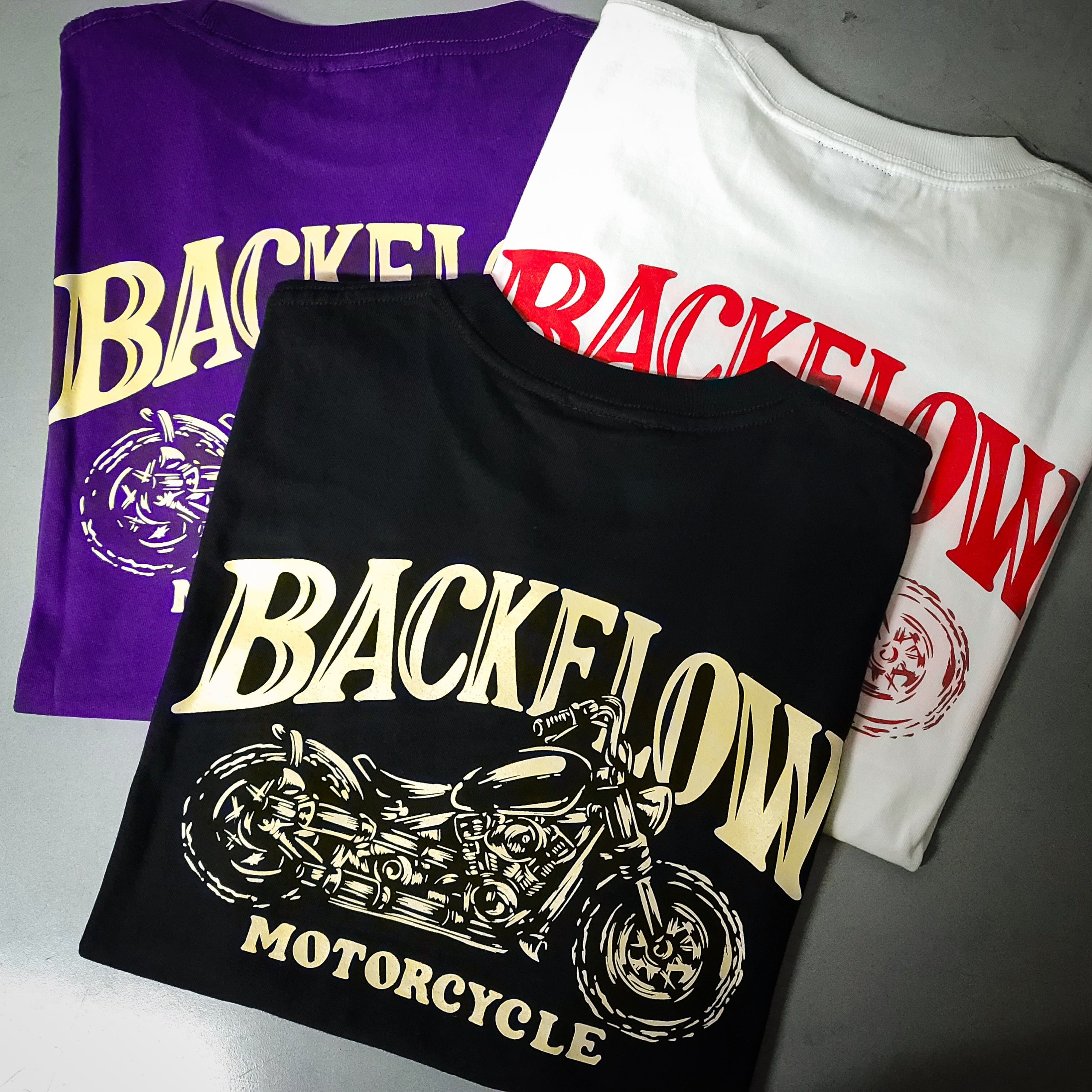 ・バックフローモーターサイクルのオリジナルTシャツ
